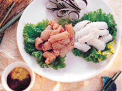 【材 料】花枝200克、泡發魷魚200克、薑1塊(磨成泥狀) 【調味料】梅醋2大匙、果糖2大匙、醬油膏1大匙 【做 法】 1.花枝魷魚洗淨,切斜塊狀。 2.先將水煮開加少許酒,把魷魚花枝用大火燙1分鐘撈起泡冰水,待涼取放盤中。 3.把調味料加入薑泥調到個人喜歡的酸甜味即可。