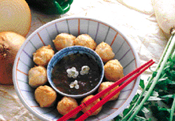 【材 料】蝦球(或花枝丸)600克、梅醬5 大匙 【調味料】蛋白二顆、太白粉1大匙 【做 法】 1.將蛋白和太白粉拌勻。 2.讓每粒蝦球沾上蛋白糊。 3.起油鍋油熱後,用中火炸成金黃色撈起,油滴乾後放入盤中食用時沾上梅醬。